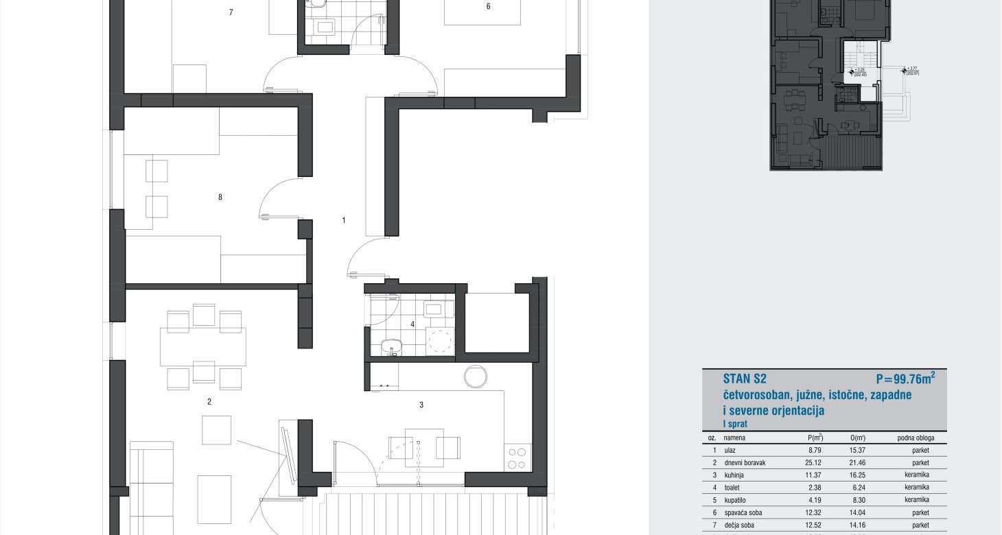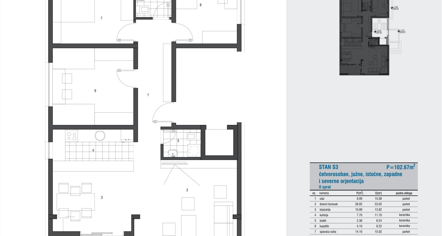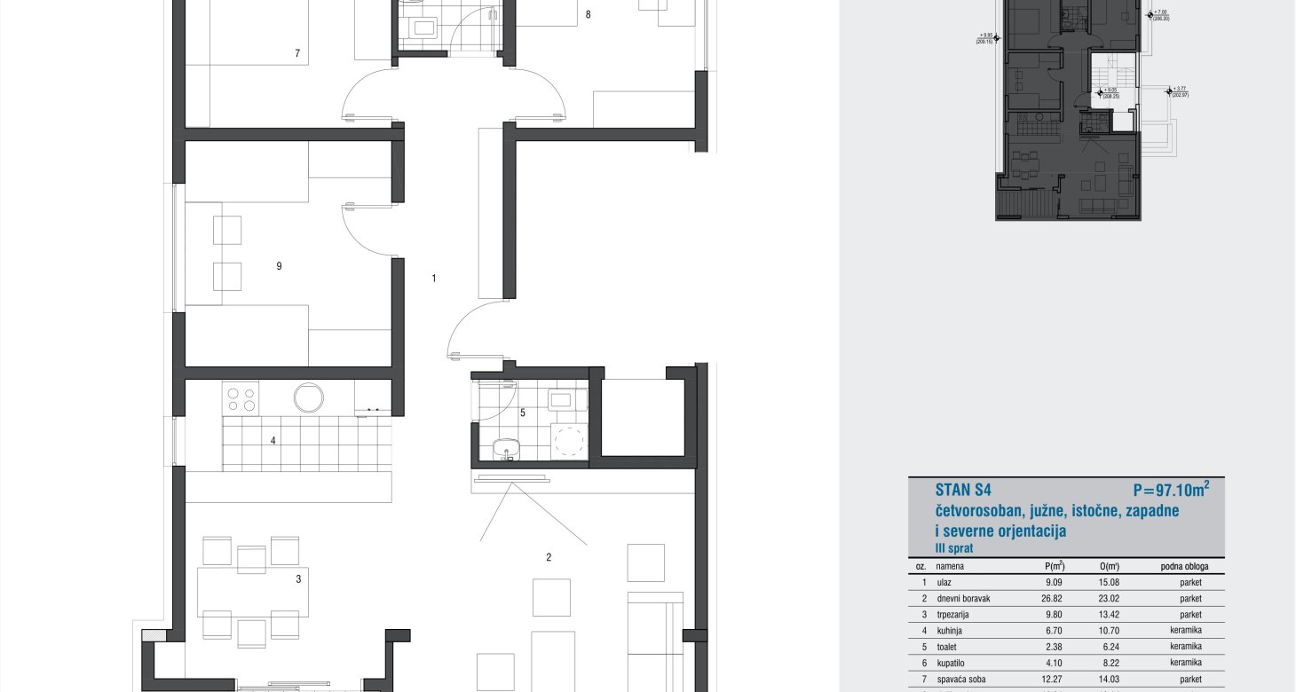 Četvorosoban – sprat III – južne, istočne, zapadne i severne orjentacije