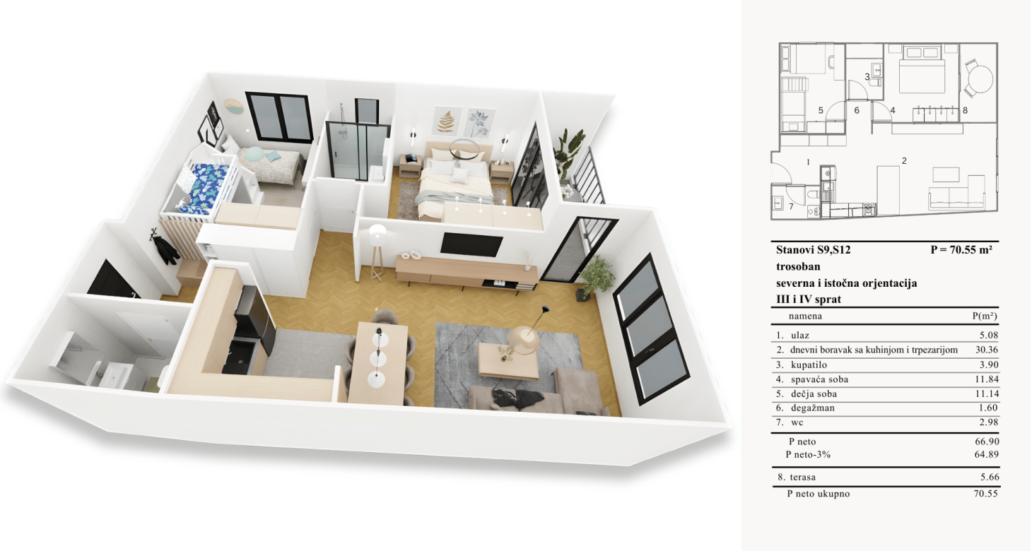 Trosoban – 3.sprat – severna i istočna orjentacija